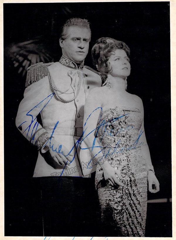 Austrian baritone (1929-1992) and Canadian soprano (b.1931), double signed photograph, shown in roles in Bruno Granichstaedten's opera Der Orlow. Stamped on verso by Doliwa photographers, Vienna. Size is 4 x 5.5 inches, in excellent condition.
