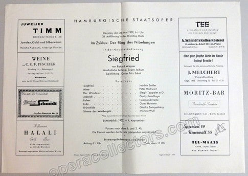 Set of 4 programs for Wagner operas, Staatsoper Hamburg, 1938 - 1940. Conductor: Eugen Jochum. Die Meistersinger von Nurnberg, 9 June 1938. Gotterdammerung, 28 June 1938. Siegfried, 23 May 1939. Die Walkure, 7 February 1940.