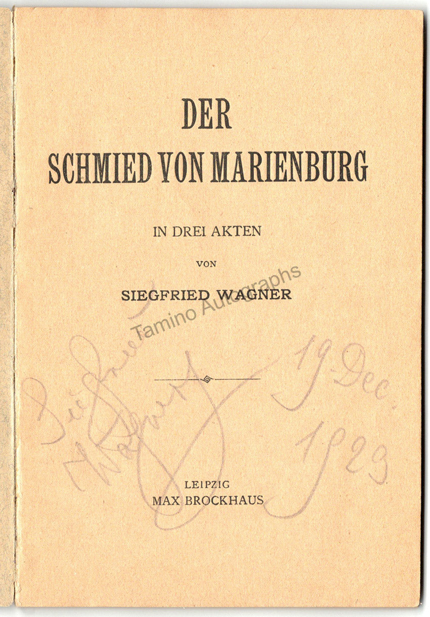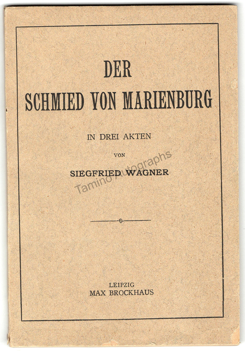 Wagner, Siegfried - Signed Libretto from his Opera "Der Schmied von Marienburg" Wagner, Siegfried - Signed Libretto from his Opera "Der Schmied von Marienburg"