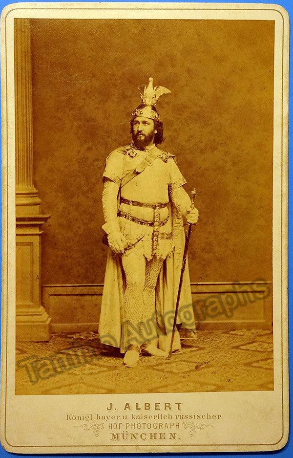 Bohemian tenor (1834-1910), unsigned cabinet photo, shown in the title role in Lohengrin. Size is 4.25 x 6.5 inches, in excellent condition.
