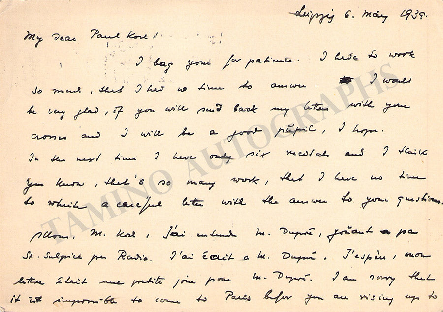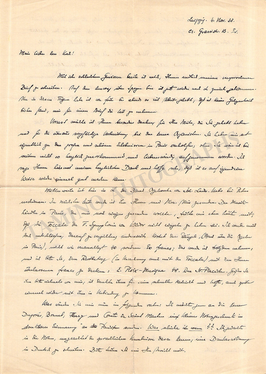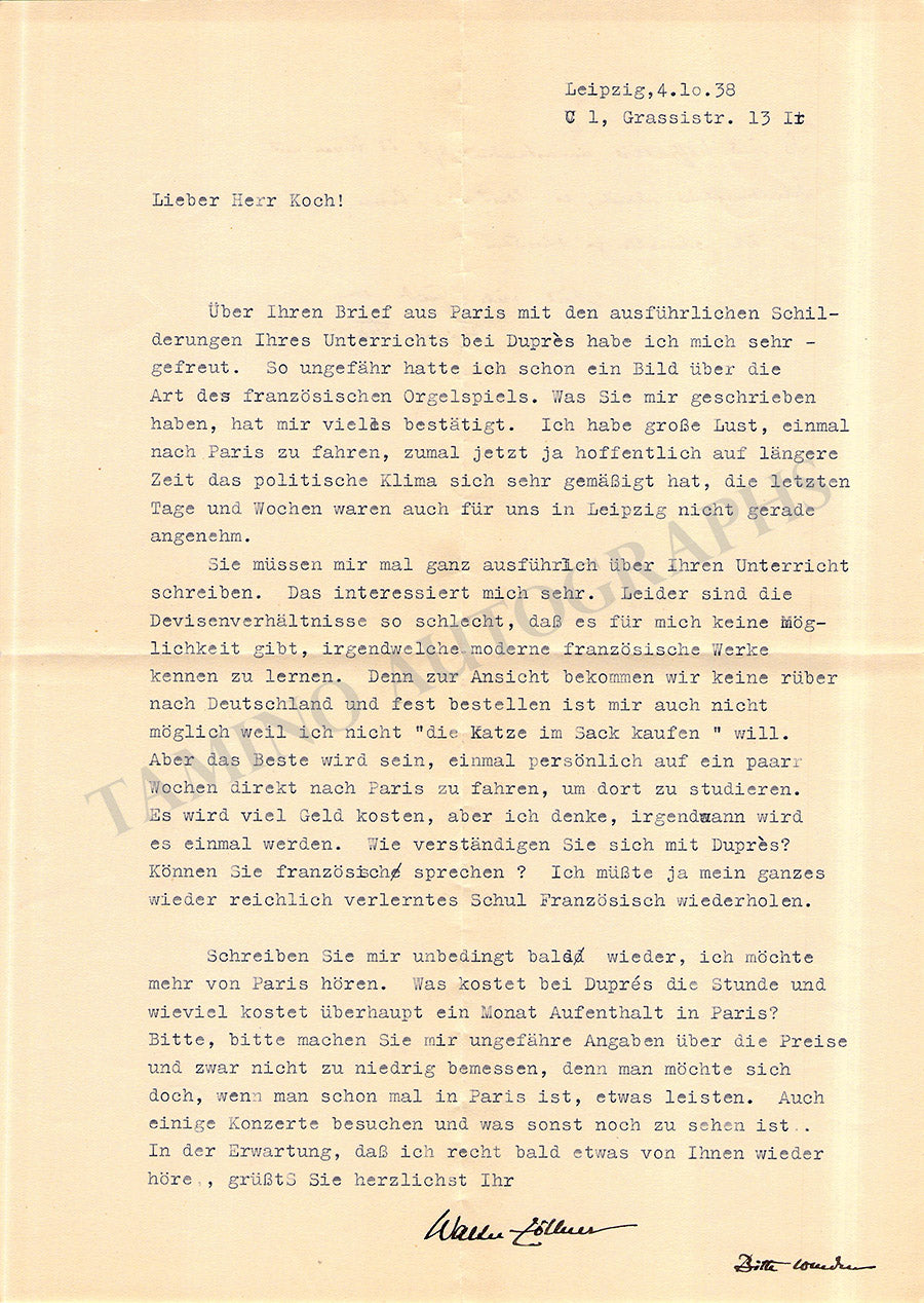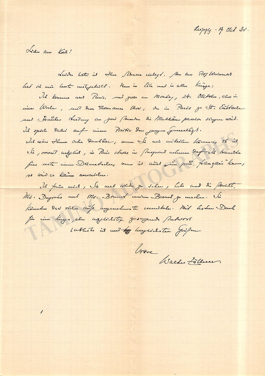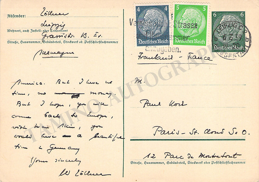 Set of 10 autograph letters signed by him and 1 typed letter signed by him, for a total of 11. All the letters are from the period 1938-1939 and addressed to his friend Paul Koch.  Different sizes, all in excellent condition.