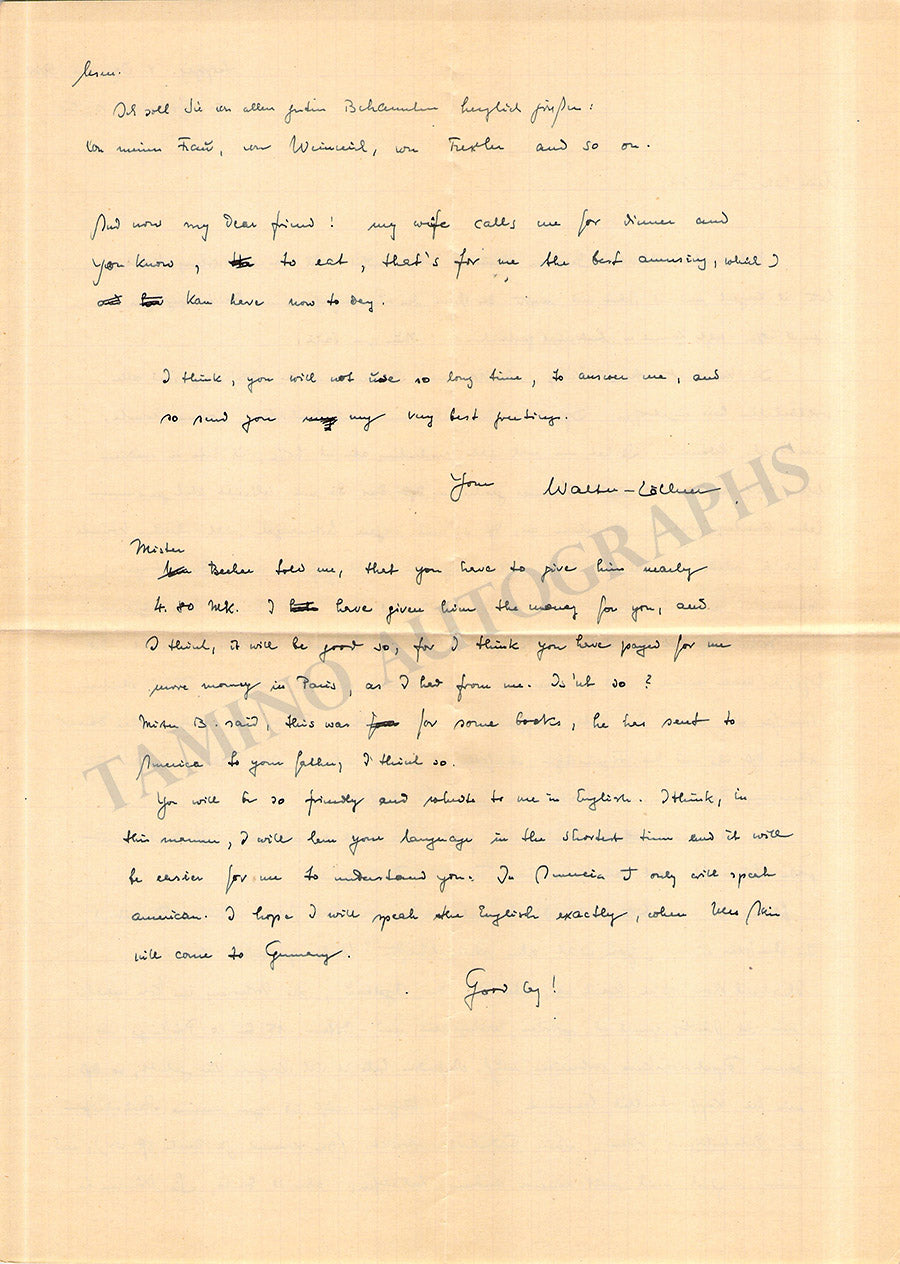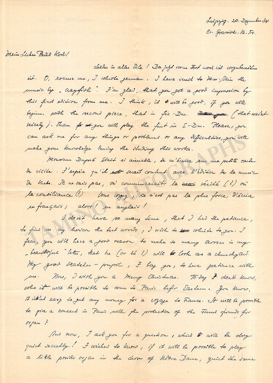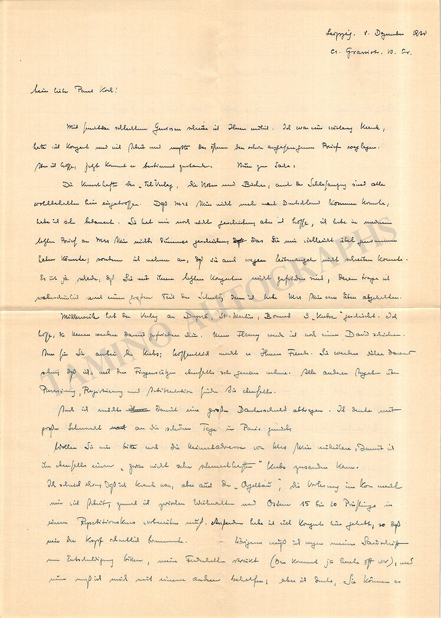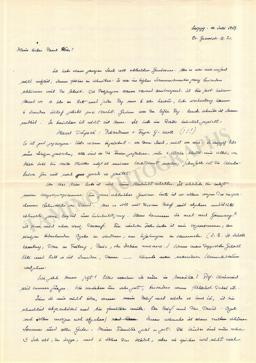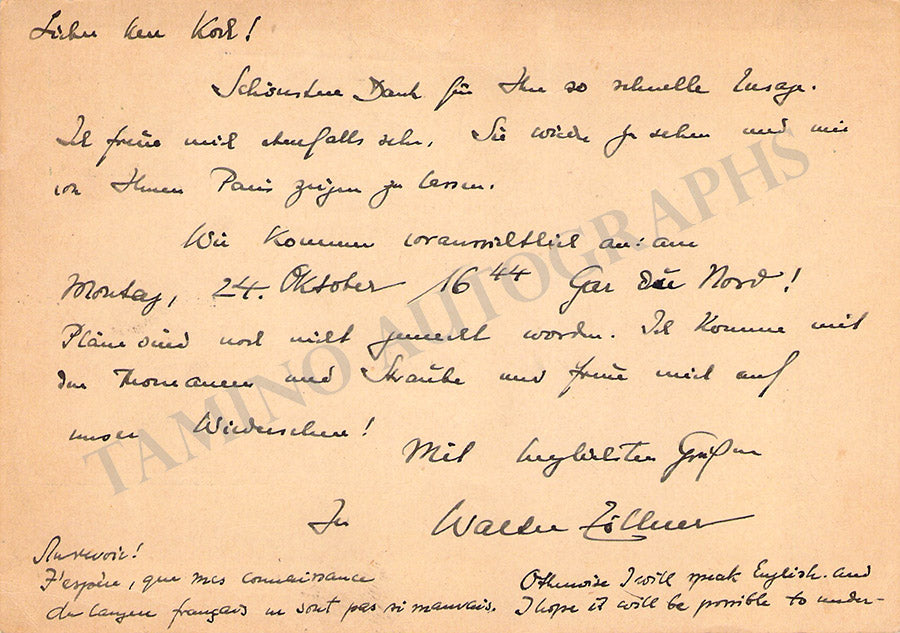 Set of 10 autograph letters signed by him and 1 typed letter signed by him, for a total of 11. All the letters are from the period 1938-1939 and addressed to his friend Paul Koch.  Different sizes, all in excellent condition.