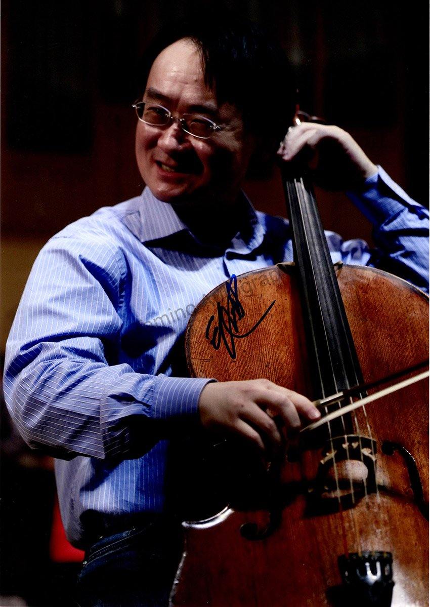 Chinese cellist (b.1968).  Larger size color photograph signed by the artist, shown during a rehearsal.  Size is 8.25 x 11.7 inches, in excellent condition.
