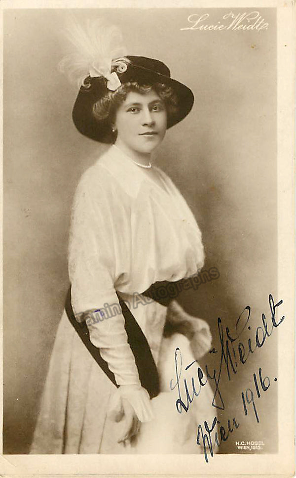 Signed postcard photograph, shown in role, inscribed in Vienna and dated in 1926. Bold handwriting and signature. Blind stamped on front by both photographer Setzer, Vienna and Magasin Metropole photo studio, Vienna. Size is 3.25 x 5.25 inches, in excellent condition.
