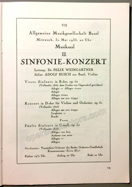 Weingartner, Felix - Beethoven Fest Concerts 1933 - Adolf Busch, Rudol