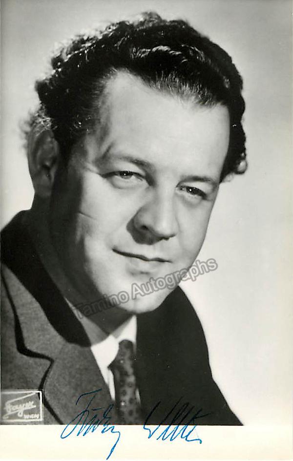 Signed photo, shown as himself, dated in Vienna in 1961. Stamped on verso by photographer Fayer, Vienna. Size is 3.25 x 5.5 inches, in excellent condition.