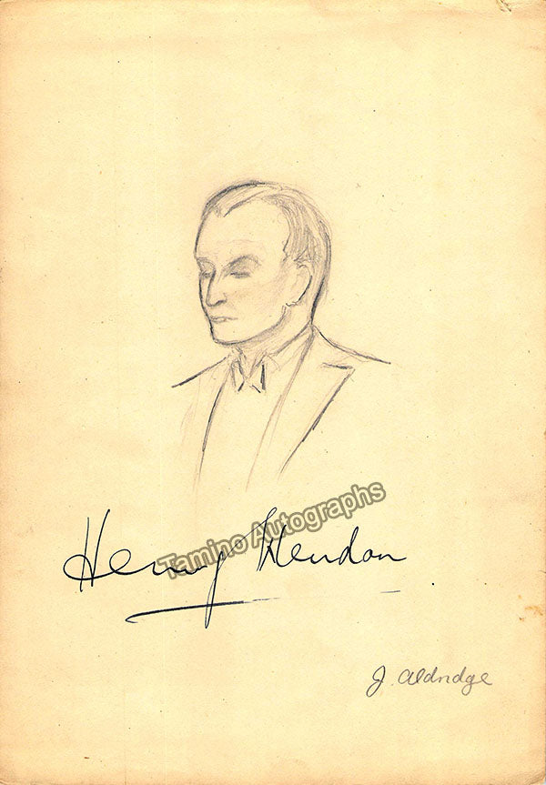Signed etching of the tenor, shown as himself, handsigned on front by the artist J. Aldridge. Size is 7 x 10 inches, on soft cardboard, small tear on top right not affecting image and signature, otherwise in very good condition.