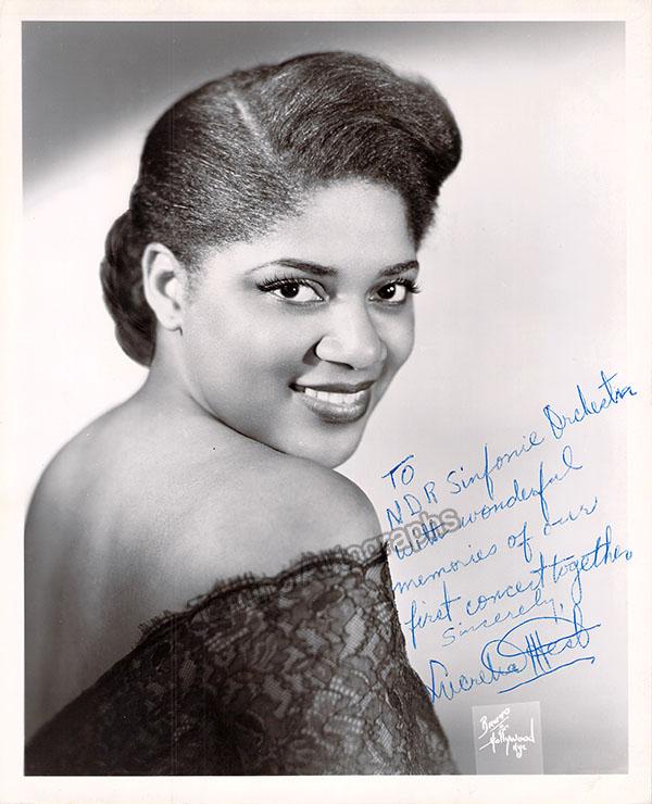 American mezzo-soprano (b. 1922), large signed photo, shown as herself. Inscribed. Stamped on verso by photographer Bruno of Hollywood, and New York. Size is 8 x 10 inches, in excellent condition.