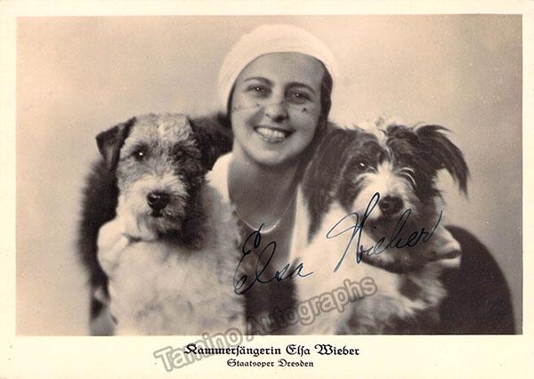 American soprano (1903-?), signed photo postcard, shown as herself with two dogs. Size is 4.25 x 5.75 inches, in excellent condition.