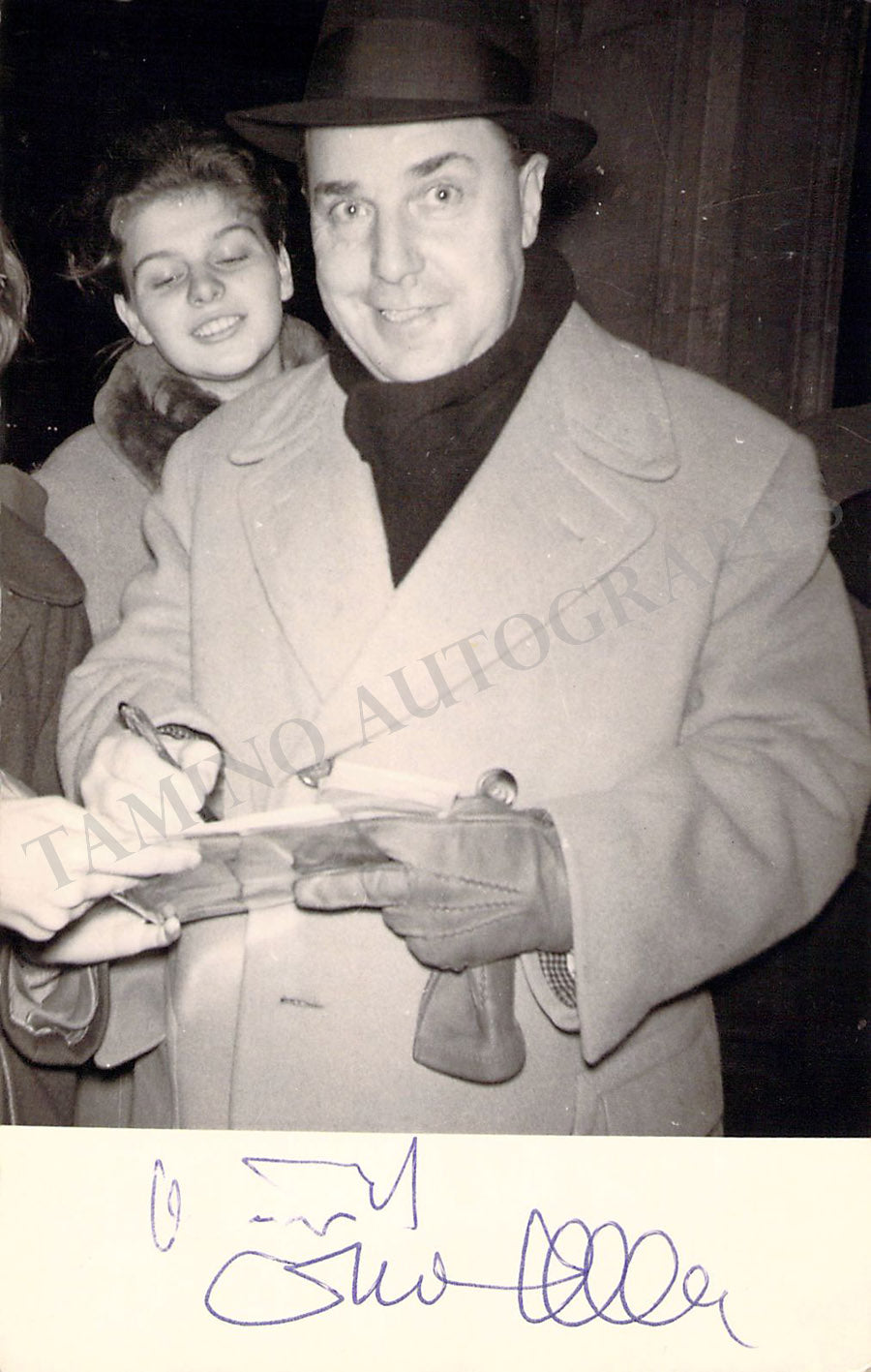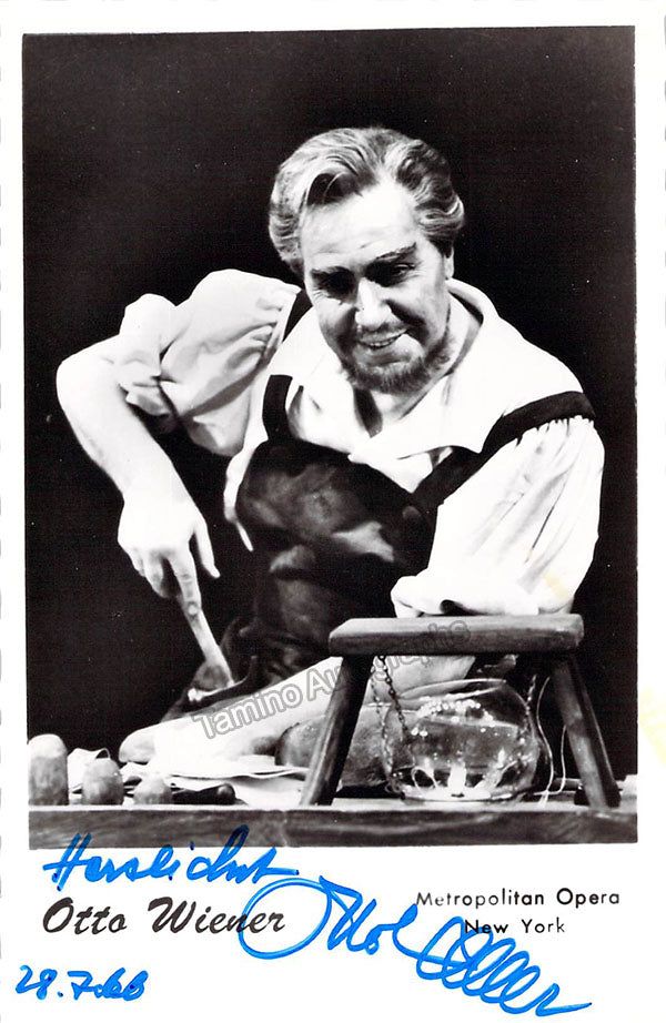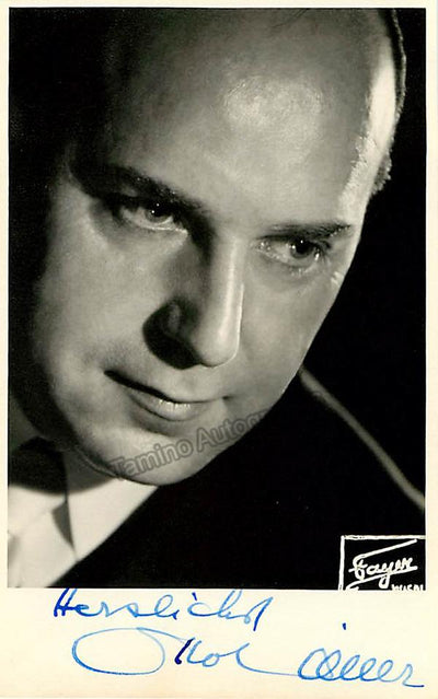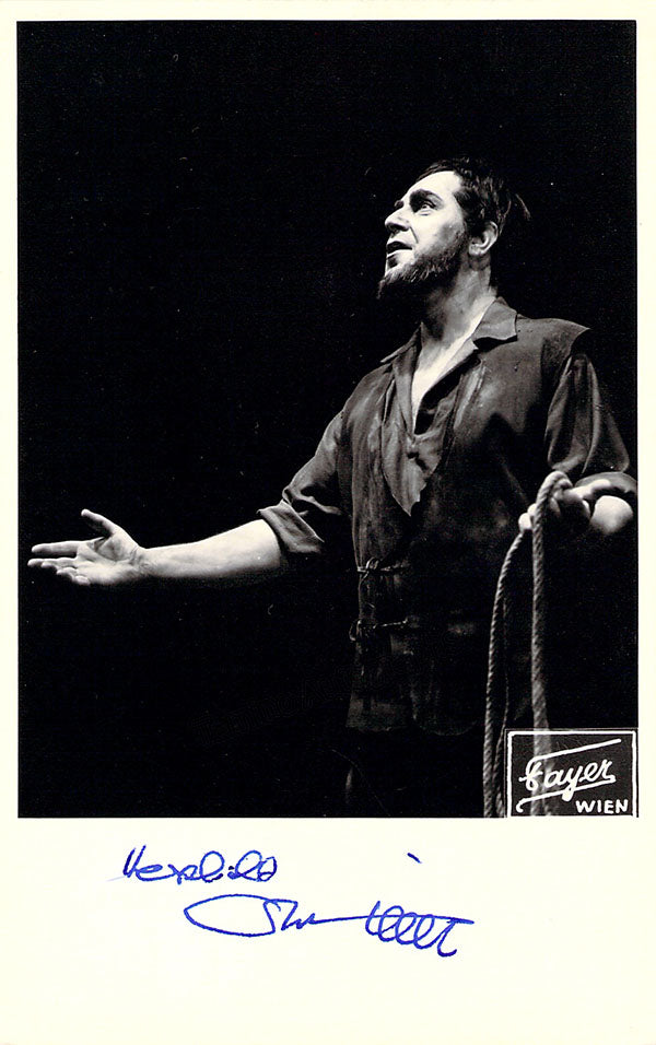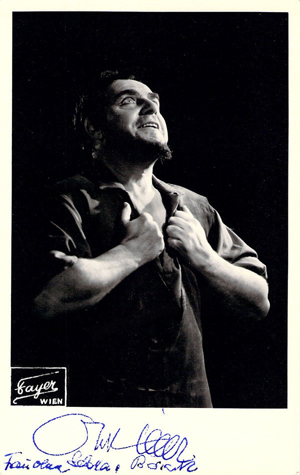 Nice black-and-white promo photograph signed by him shown as Hans Sachs in a production of Wagner's Die Meistersinger von Nürnberg at Teatro Alla Scala, Milan, season 1961-1962. Size is 4.1 x 5.75 inches, in excellent condition.