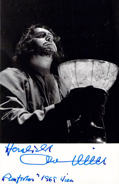 Signed photograph, shown as Amfortas in Wagner's Parsifal, dated in Vienna in 1968. Size is 3.5 x 5.5 inches, in excellent condition.