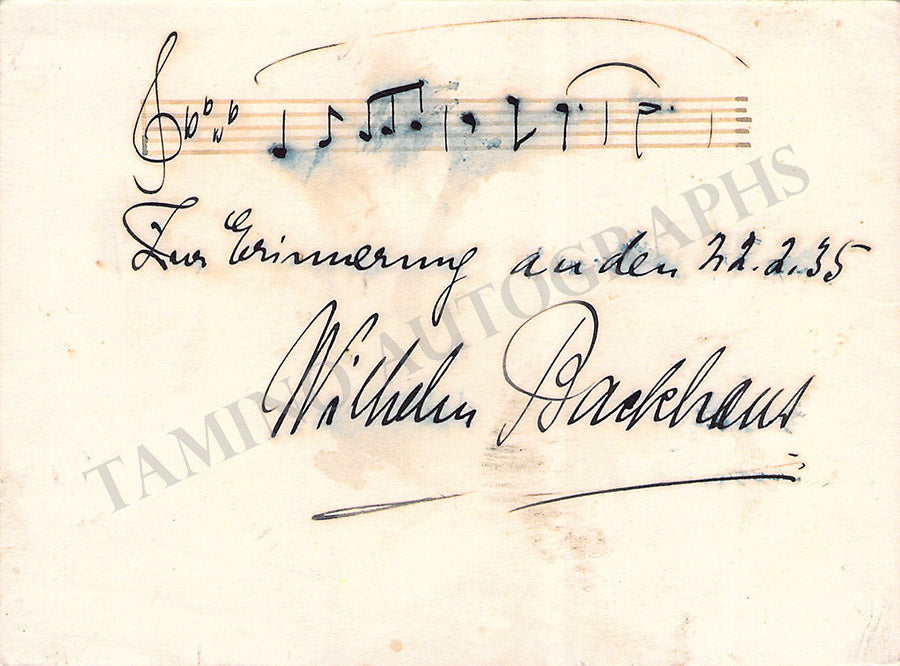 Autograph on a card with a 3-bar music quote signed by him with a short sentiment, dated February 22, 1935. Size is 5.25 x 3.9 inches, some smudge on ink, otherwise in very good condition.