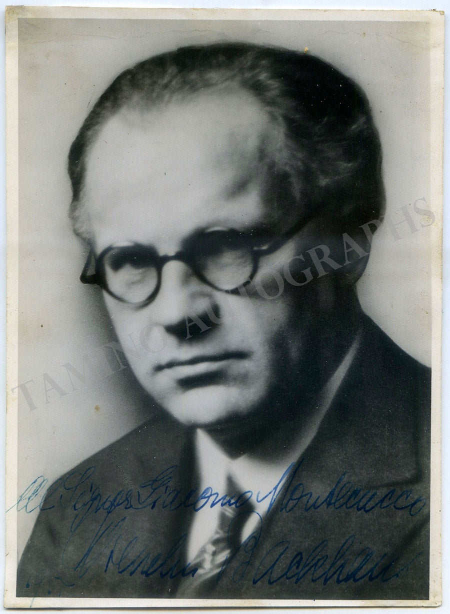 Nice black-and-white photograph of his portrait signed and inscribed by him with a short sentiment dated 1938. Size is 3.8 x 5.9 inches, jagged edges, mounting traces on verso, in excellent condition.