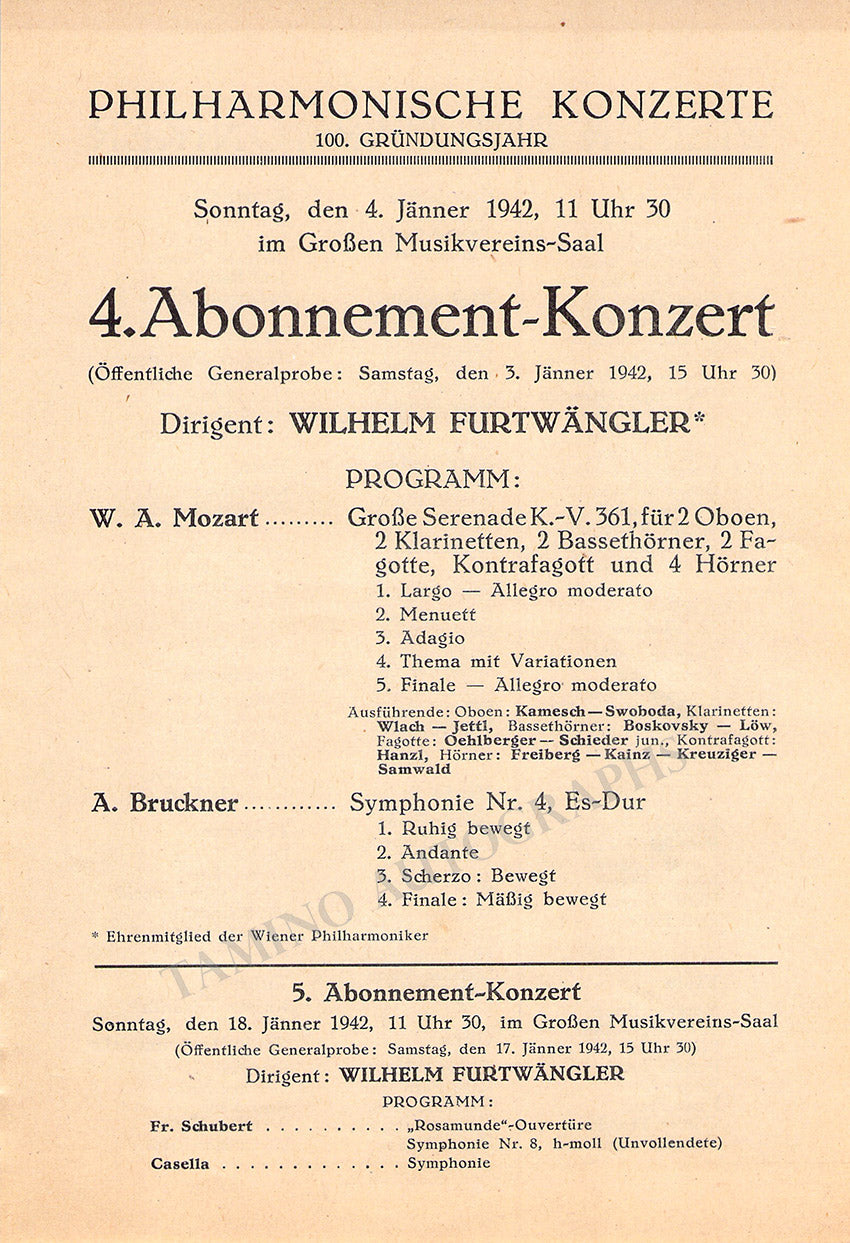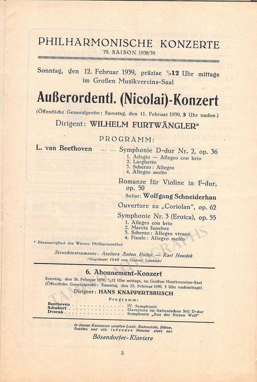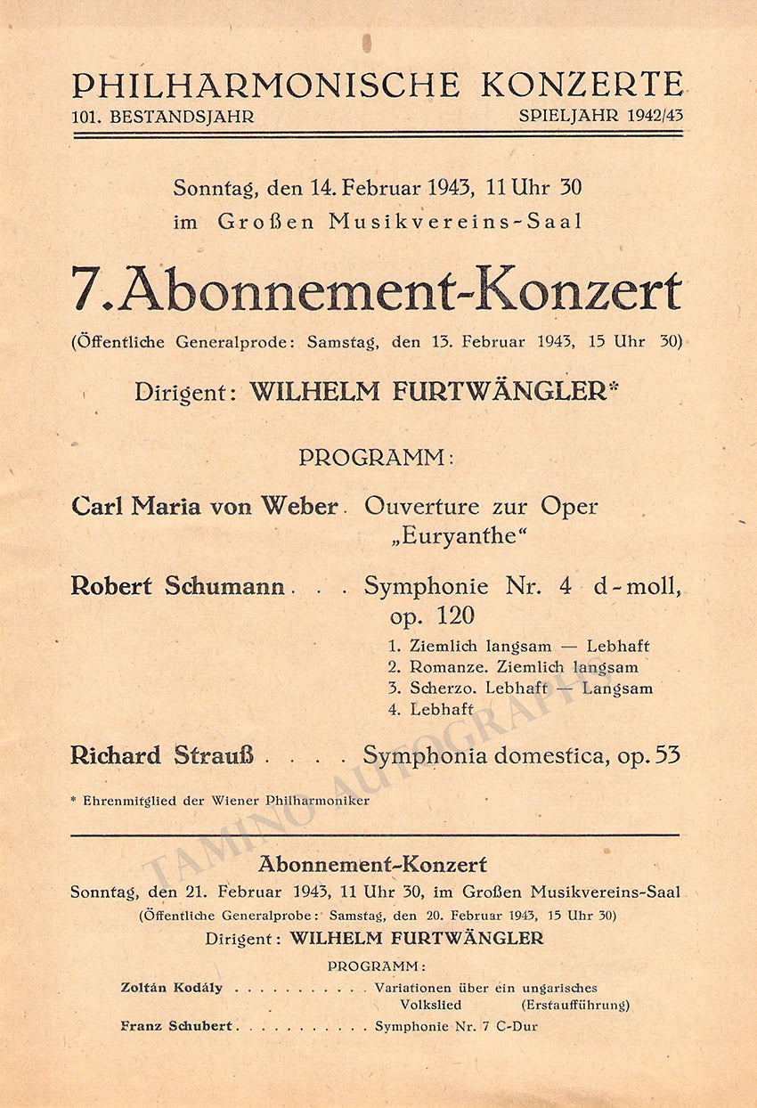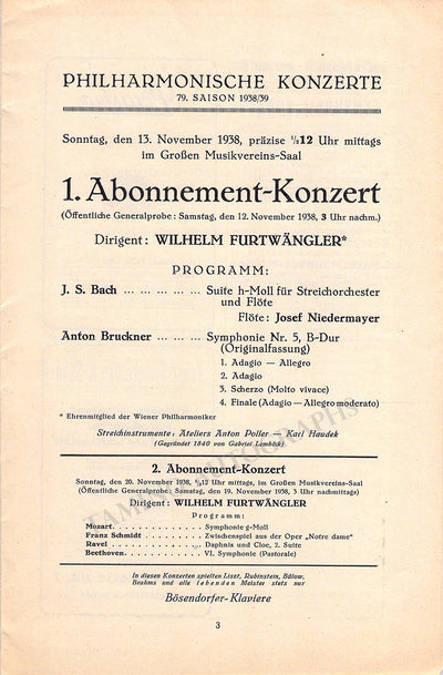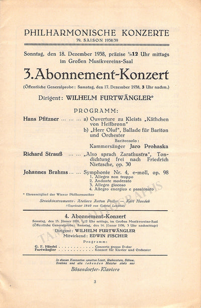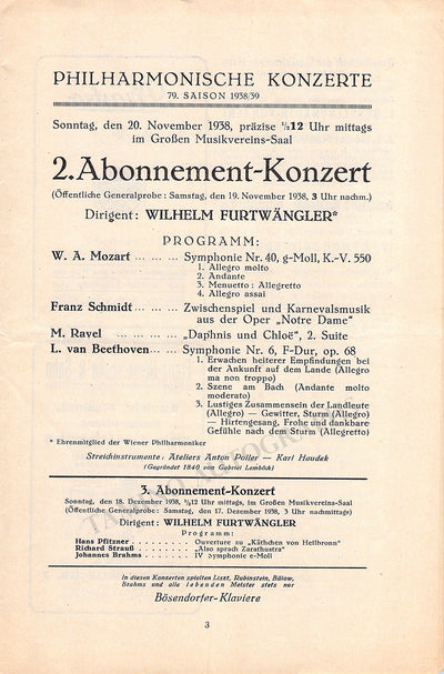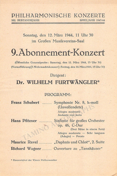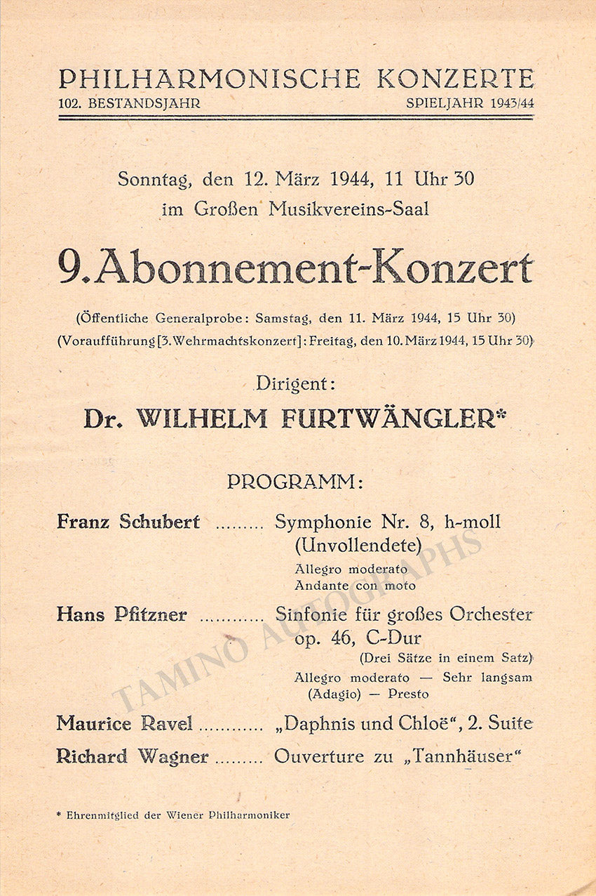 Furtwangler, Wilhelm - Unsigned Concert Programs II (Various Options)