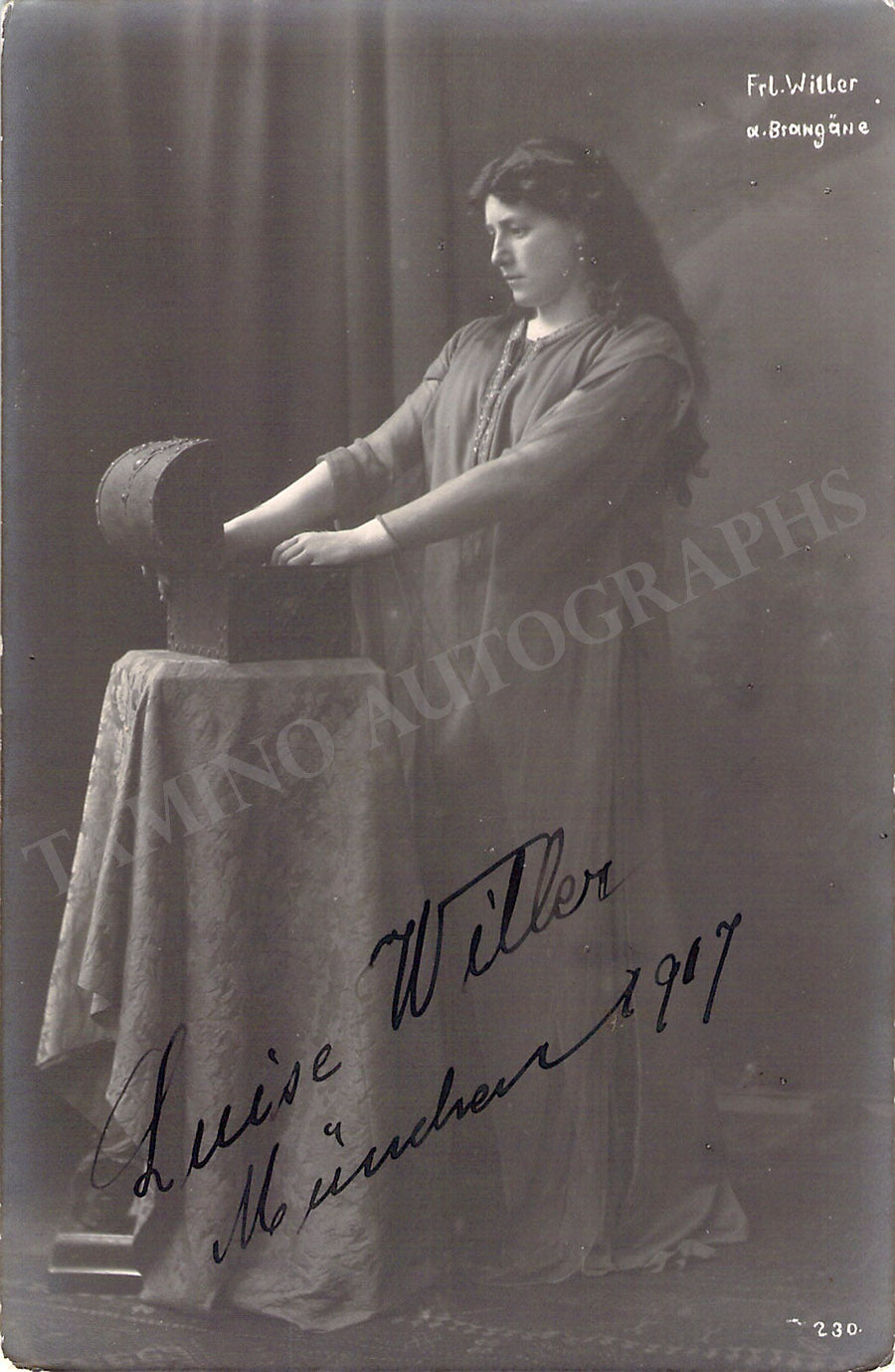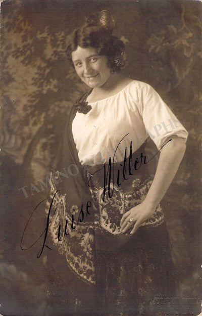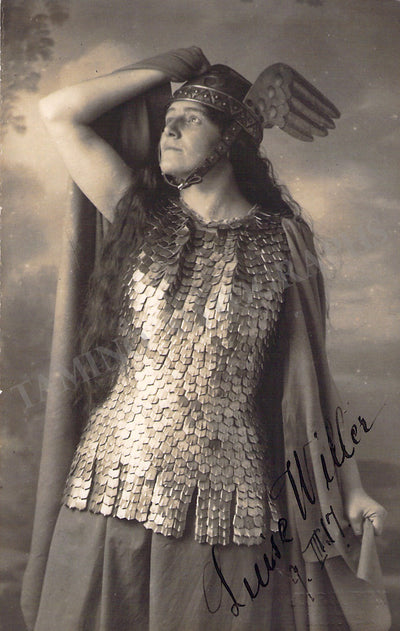 Signed postcard photograph, shown as Brangaene in Wagner's Tristan und Isolde, dated in Munich in 1917. Size is 3.5 x 5.5 inches, slight paper loss on edges, otherwise in excellent condition.