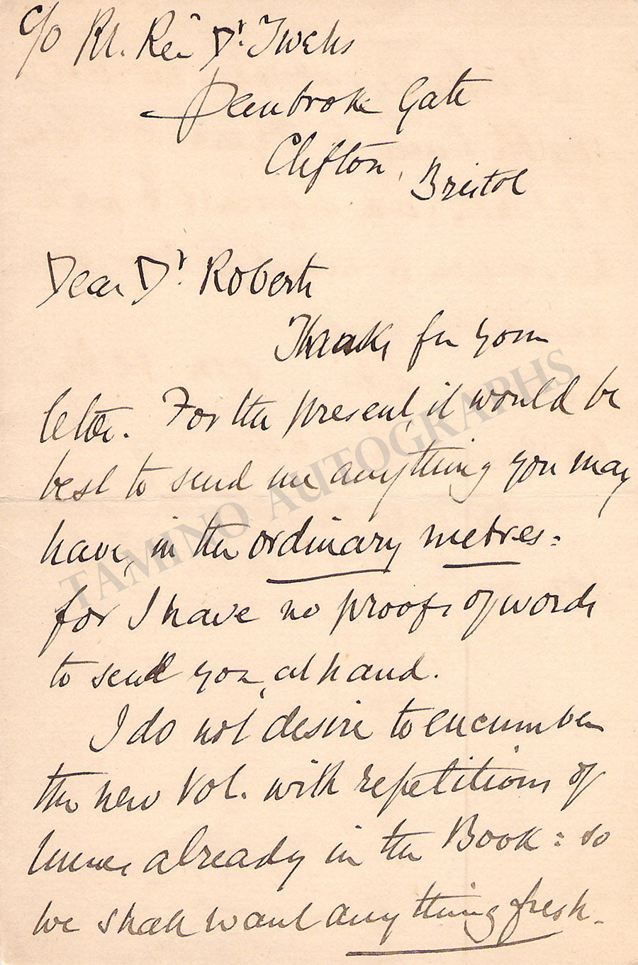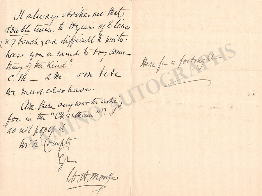 Monk, William Henry - Autograph Letter Signed Monk, William Henry - Autograph Letter Signed