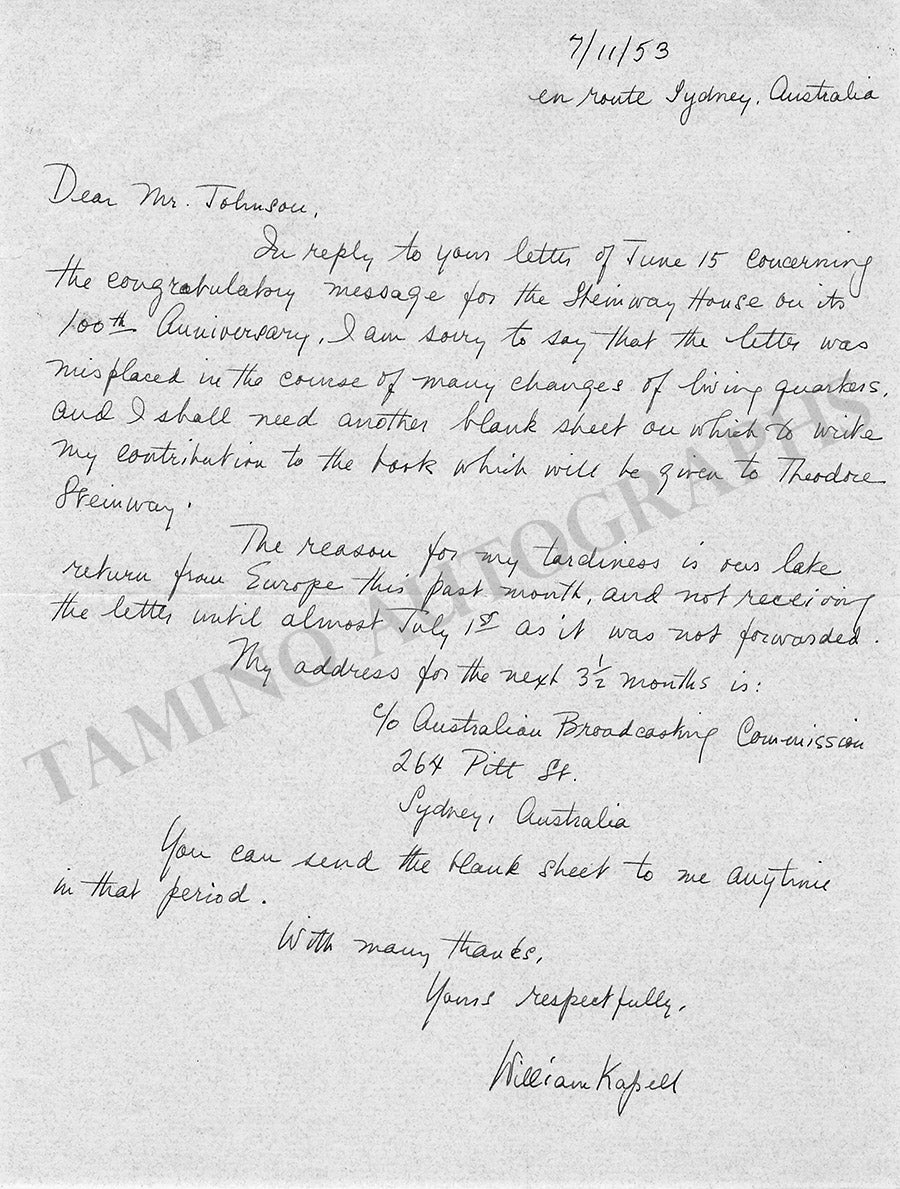 William Kappel Autograph Letter Signed 1953