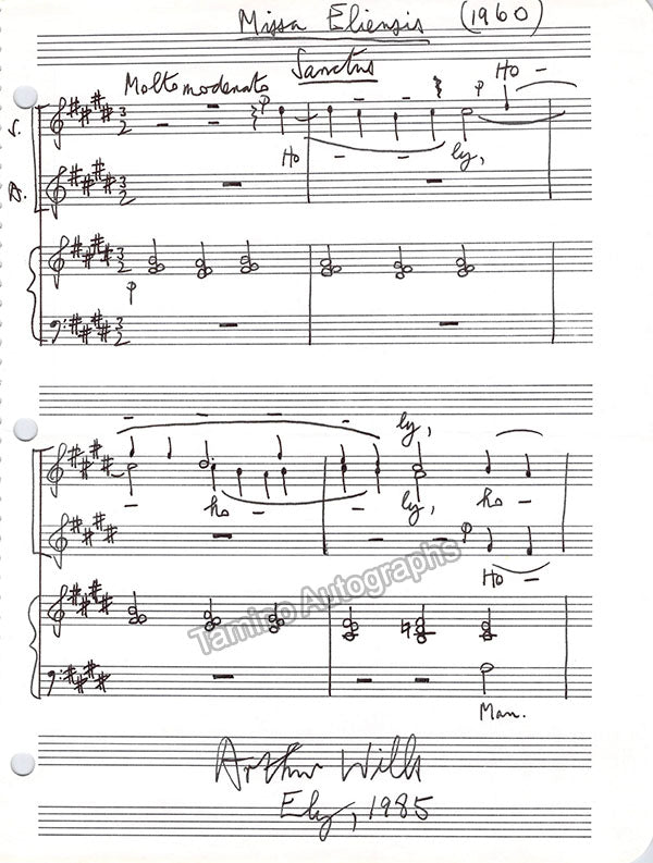 Wills, Arthur - Autograph Music Quote Signed 1985
