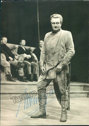 Signed photo postcard of the German tenor (1914-1974) shown as Walther in Wagner's Die Meistersinger von Nürnberg at Bayreuth, dated in 1960. Size 4 x 5.75 inches.