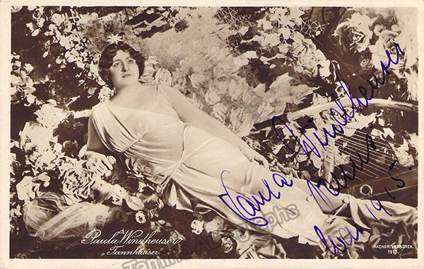 Signed postcard photograph, shown as Venus in Wagner's Tannhauser, dated in 1915. Size is 3.25 x 5.25 inches, in excellent condition.