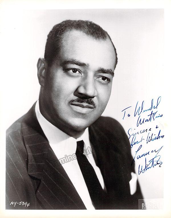 American bass-baritone (1915-1965), large signed photo, shown as himself. Inscribed, photo by Bender Photograph. Size is 8 x 10 inches, some bending on corners but otherwise in very good condition.