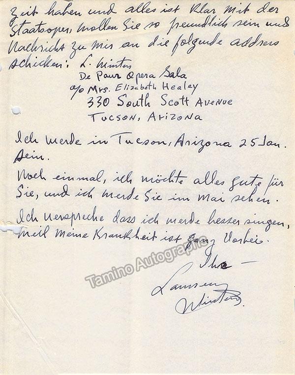 Winters, Lawrence  - Autograph Letter Signed 1957 - Tamino Winters, Lawrence  - Autograph Letter Signed 1957 - Tamino