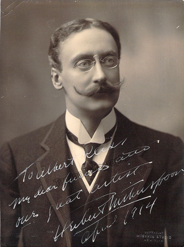 American bass (1873-1935) and later opera manager, made many recordings in the early days of the Victor Talking Machine company. Signed photograph, shown as himself,  inscribed, dated in 1914. Blind stamped on front by Mishkin photo studio, New York. Size is 5.75 x 7.5 inches, small crease on top left and some silvering, otherwise in very good condition.