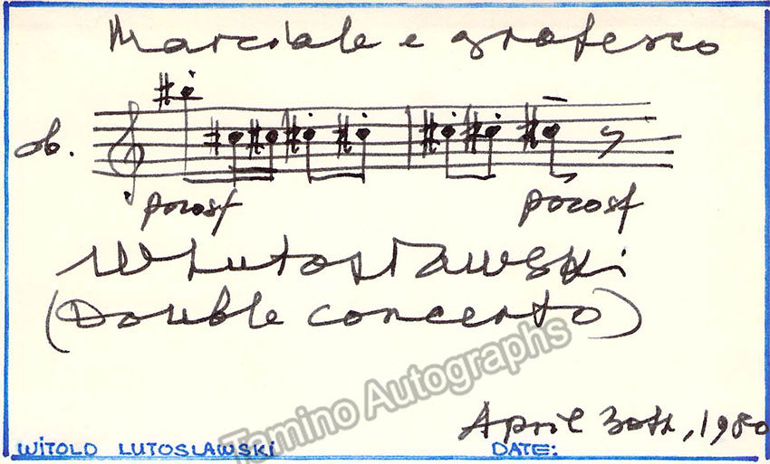 Lutoslawski, Witold - Autograph Music Quote Signed 1980