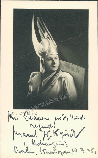 Belgian tenor (1903-1955), signed photo postcard, shown as Lohengrin, inscribed, 3.25 x 5.25 inches, dated in Berlin in 1935