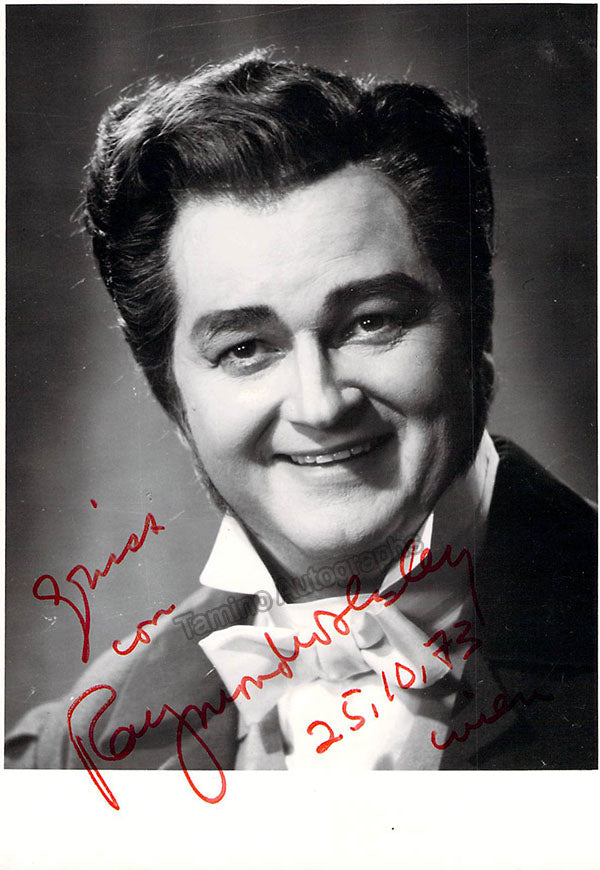 American baritone (1926-1998), signed photograph, shown in role, dated in 1973. Stamped on verso by photographer Lieske. Size is 4 x 5.75 inches, some bends, otherwise in very good condition.