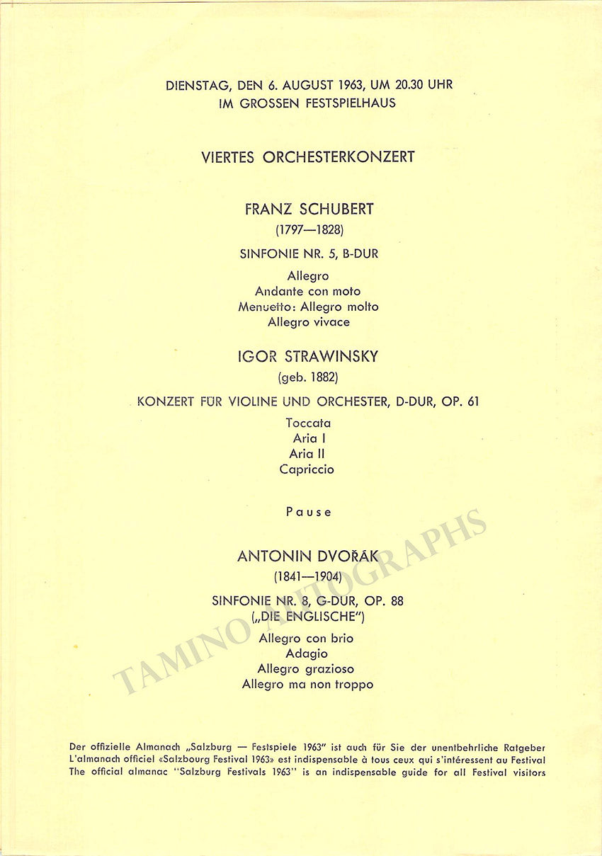 Schneiderhan, Wolfgang - Concert Program Salzburg 1963 Schneiderhan, Wolfgang - Concert Program Salzburg 1963