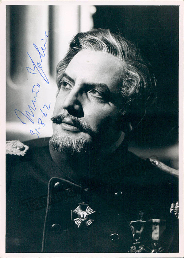 Egyptian bass-baritone (1929-?), signed photo, shown as prince Gremin in Eugene Onegin. Stamped on verso by photographer Rudolf Betz, Munich. Size is 4 x 6 inches.