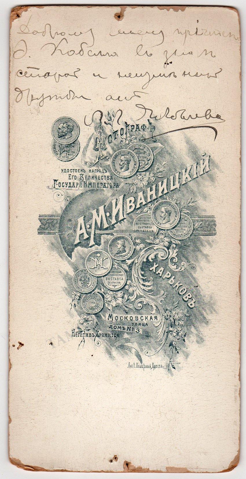 Russian baritone (1858-1919) who sang in the world premieres of operas by Tchaikovsky and Rubinstein.  Beautiful Imperial-style cabinet photograph shown as himself, signed by him on verso with a short sentiment, inscribed to conductor Edoardo Cabella.  Photo by photographer A.M. Ivansky, Moscow.  Size is 4.2 x 8.4 inches, some damage on the corners, pinholes in all four borders, otherwise in very good condition.  Very Rare!