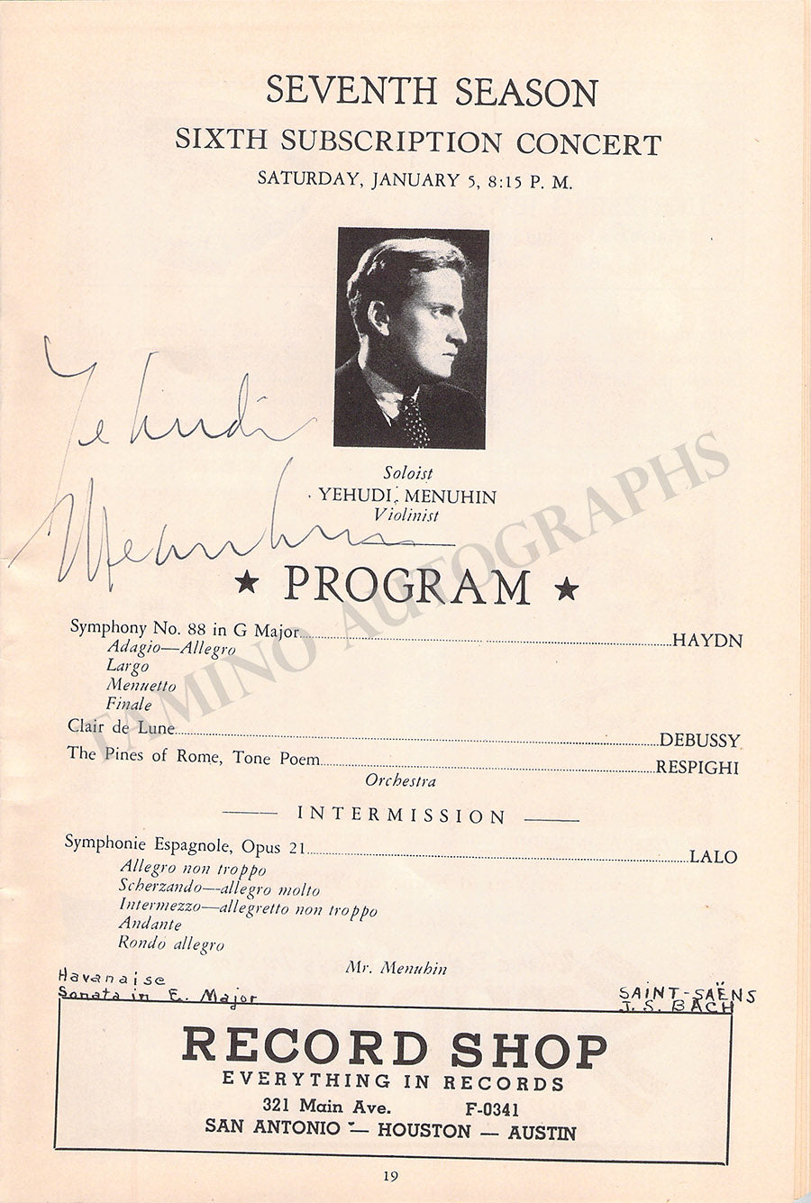 Menuhin, Yehudi - Signed Program 1946 Menuhin, Yehudi - Signed Program 1946