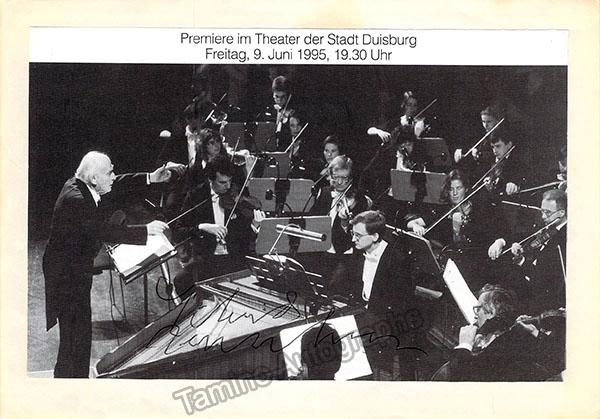 Signed half-tone photo shown conducting attached to an album page, dated in 1995. Size is 8.25 x 5.75 inches, in excellent condition.