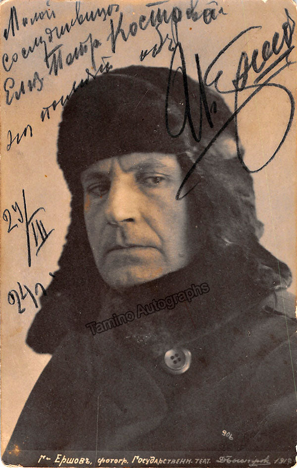 Russian tenor (1867-1943), (his last name is also written as Ershov), signed photograph, shown as himself, inscribed. Size is 3.5 x 5.5 inches, some wear and brown spots on verso, but in generally good condition.