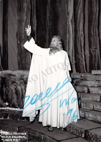 Signed photograph, shown as Zaccaria in Verdi's Nabucco, inscribed and dated in Milan in 1968. Photo by Piccagliani, La Scala, Milan. Size is 5 x 7 inches, small creases on edges, but in otherwise very good condition.