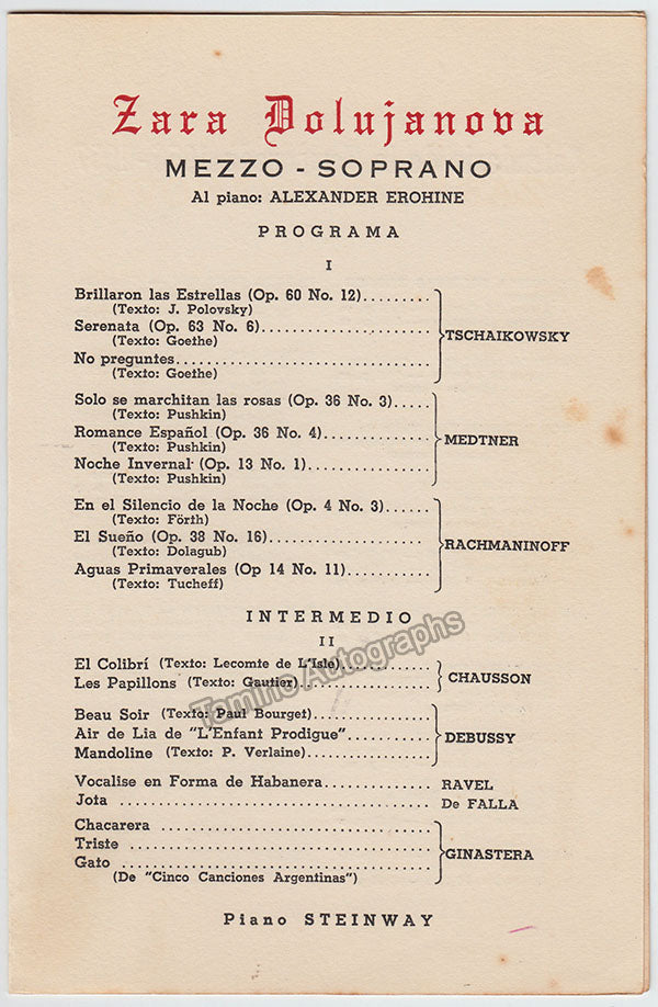 Dolukhanova, Zara - Signed Program Havana 1956