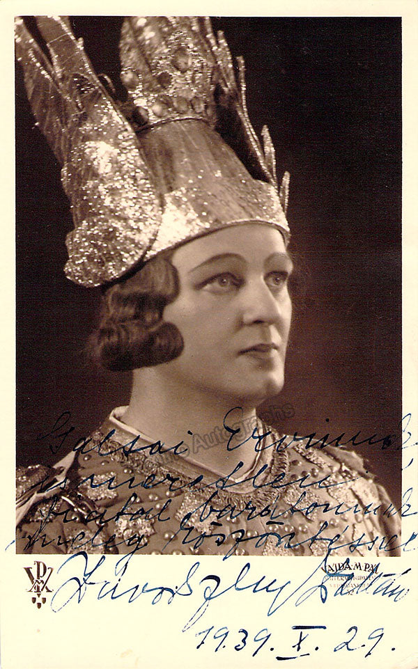 Hungarian tenor (1892-1976), signed postcard photograph, shown in role, inscribed and dated in 1939. Photo by Vajda M. Pal photographers, Budapest. Size is 3.25 x 5.25 inches, in excellent condition.