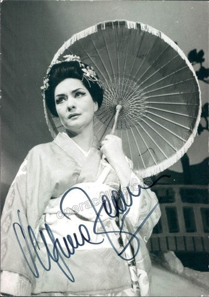 Signed photo of the Romanian-born soprano (b.1925), shown as Madama Butterfly at La Scala, 4 x 6 inches. Stamped on verso by photographer Erio Piccagliani, in excellent condition