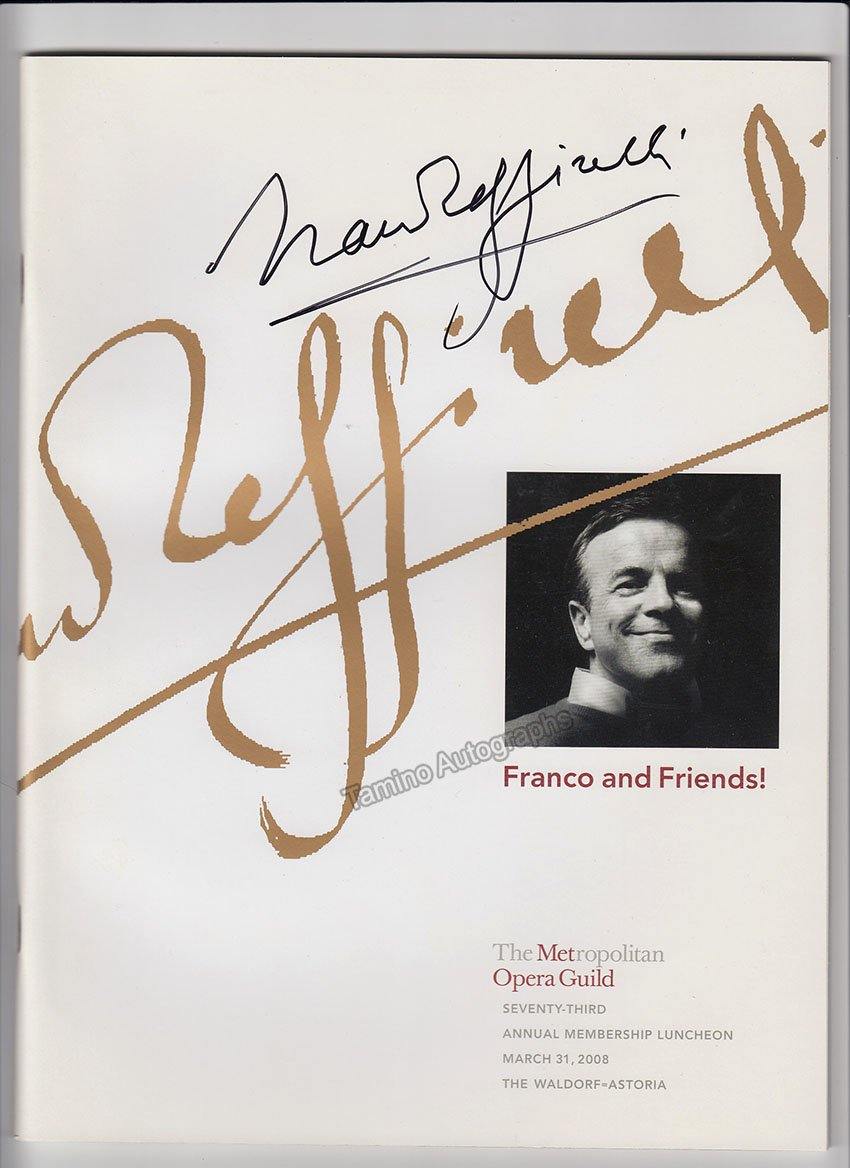 Program for a gala performance organized by the Metropolitan Opera Guild on March 31st, 2008, to celebrate the Italian scenographer's career, productions and achievements, entitled "Franco & Friends", signed by him on the front cover.  Size is 8.1 x 10 inches, 6 pages including covers, in excellent condition.