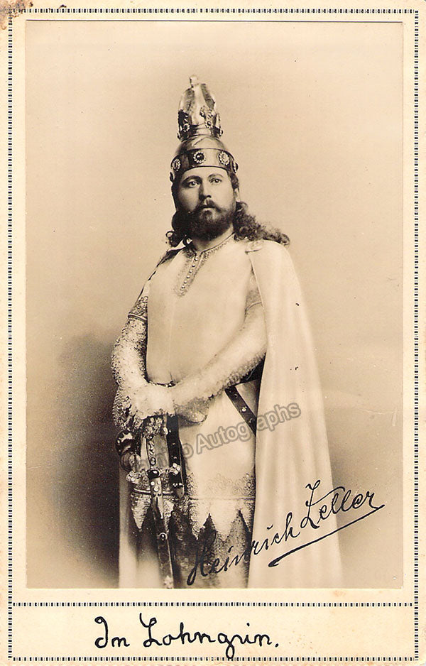 German tenor (1856-1934), signed postcard photograph, shown in title role of Wagner's Lohengrin. Photo by E. Schulte, Weimar. Size is 3.5 x 5.5 inches, attractive vintage item in excellent condition.