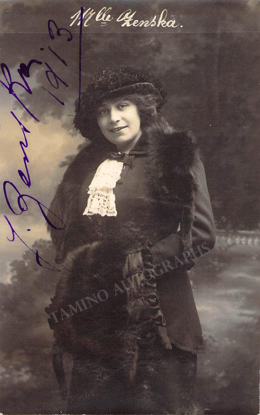 Polish soprano (1885-?), signed photo postcard, shown in role (possibly Mimi in Puccini's La Boheme), dated in 1913. Photo by G. Halleux-Mertens, Anvers. Bold signature in attractive purple ink. Size is 3.5 x 5.5 inches, attractive vintage item in excellent condition.