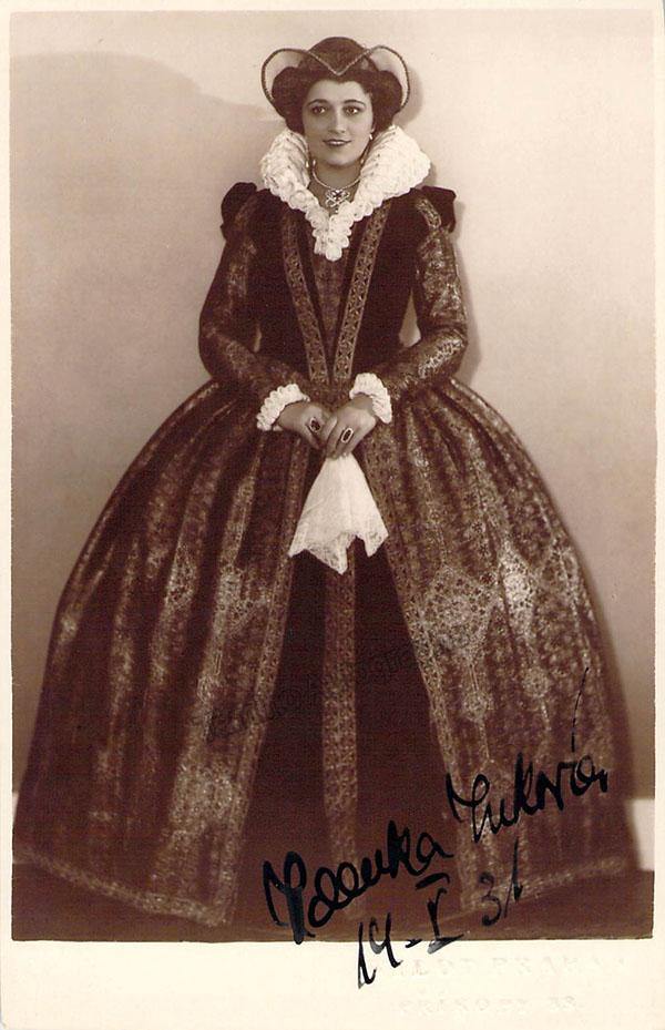 Czech soprano (1905-1990), signed photo postcard, shown in role, dated in 1936. Blind stamped by photographer Wildt, Prague. Size is 3.25 x 5.25 inches, in excellent condition.