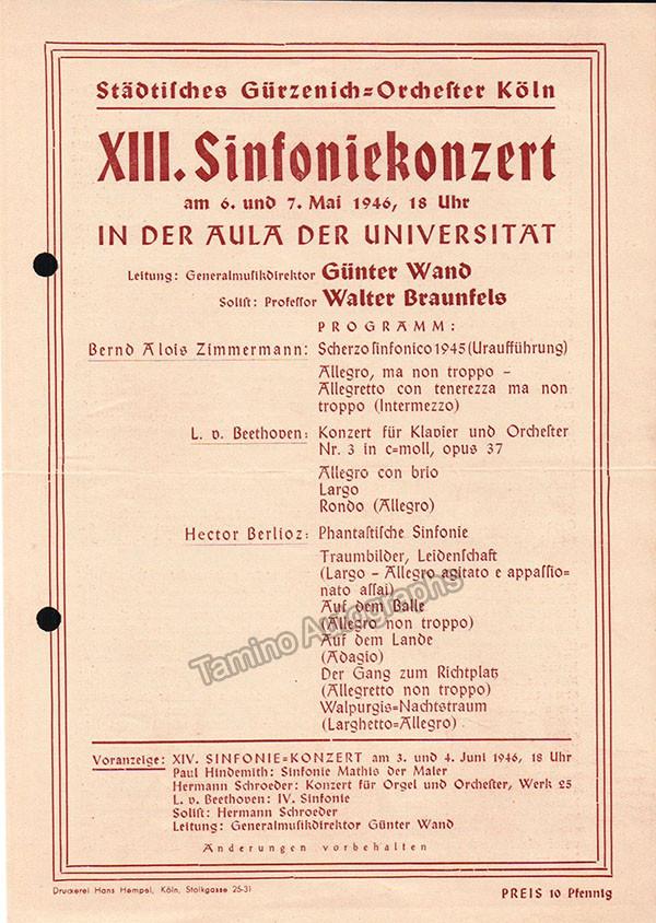 Zimmermann, Bernd - Braunfels, Walter - World Premieres 1946 Programs - Gunter Wand