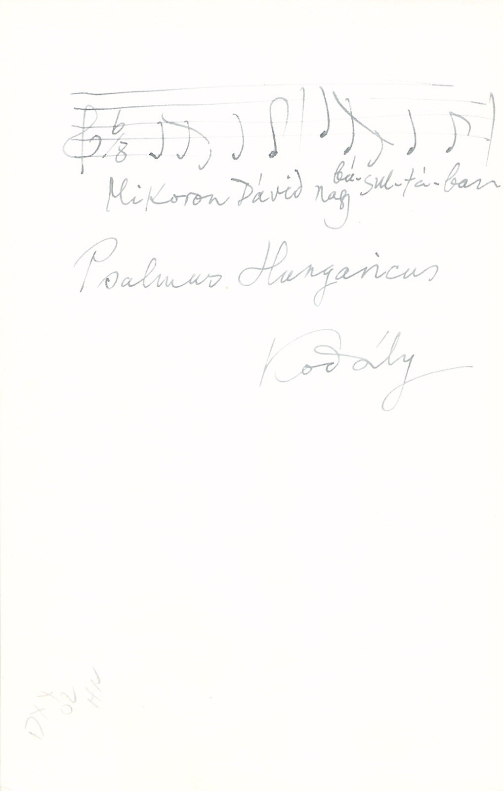 Fine black-and-white photograph signed by him on the front plus some bars from his Psalmus Hungaricus signed by him on verso. Size is 3.5 x 5.5 inches, in excellent condition.