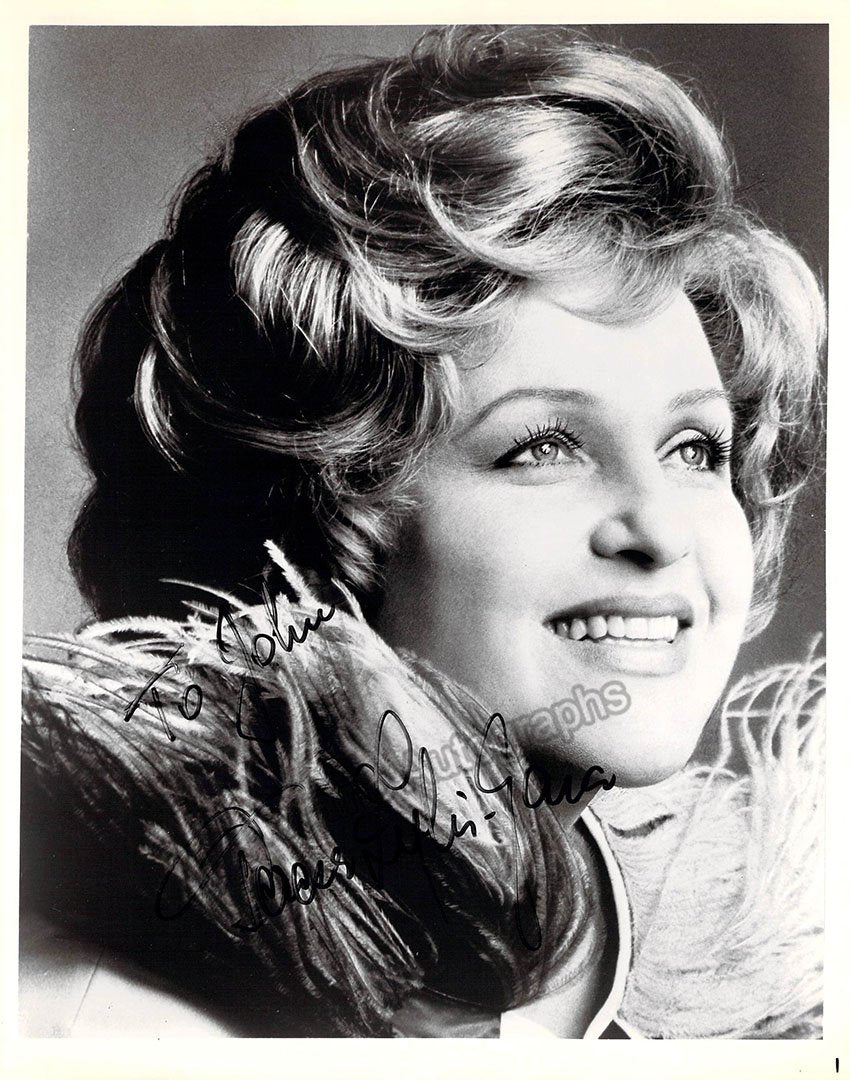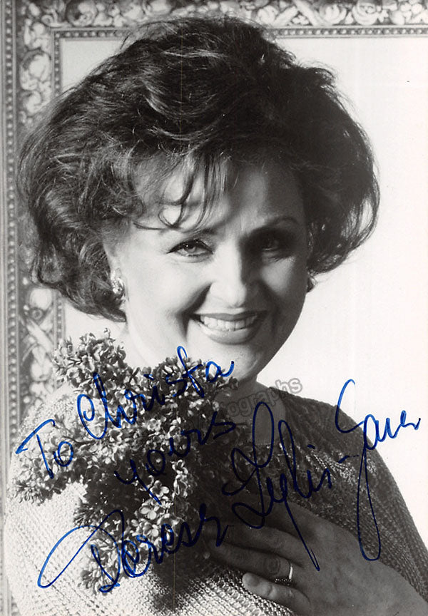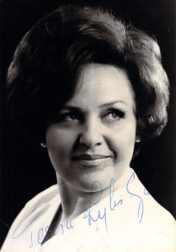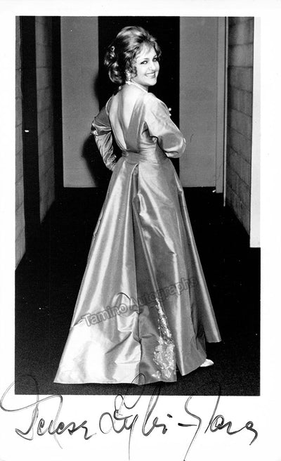 Signed photograph, shown as herself backstage at the farewell gala for Metropolitan Opera General Manager Rudolf Bing in 1972. Size is 5 x 8 inches, in excellent condition.
