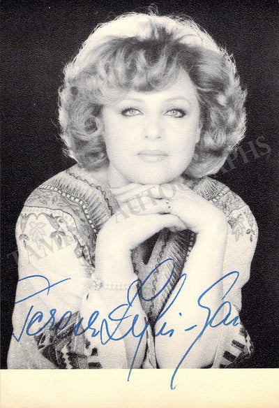 Fine black-and-white promo photograph signed by her. Size is 4.3 x 6.3 inches, in excellent condition.
