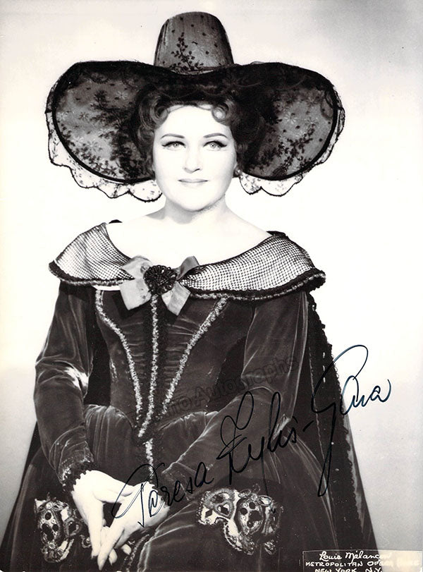 Signed photograph, shown as Donna Elvira in Mozart's Don Giovanni. Photo by Louis Melancon, Metropolitan Opera, New York. Size is 7 x 9.25 inches, very slight paper loss on bottom left, otherwise in excellent condition.