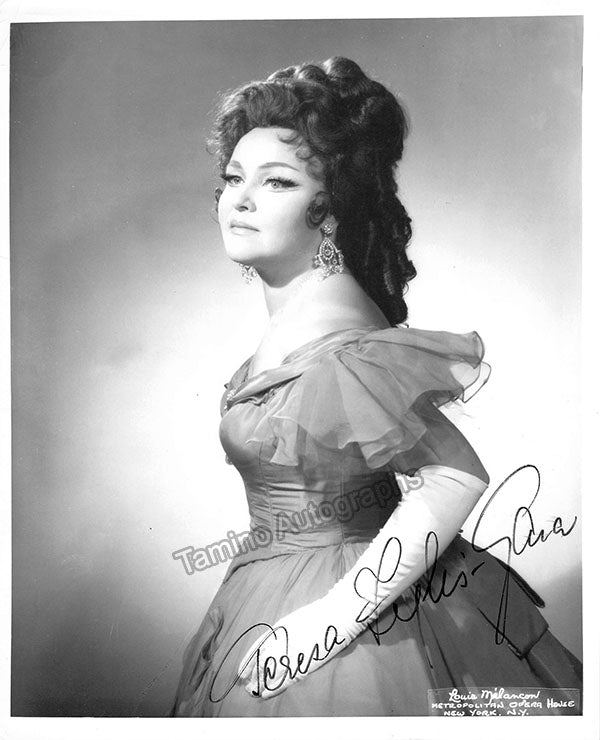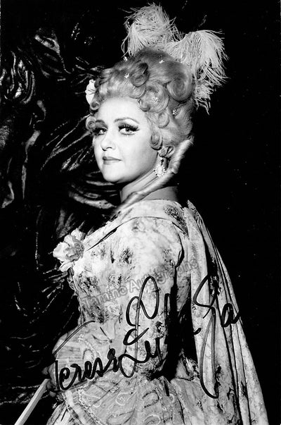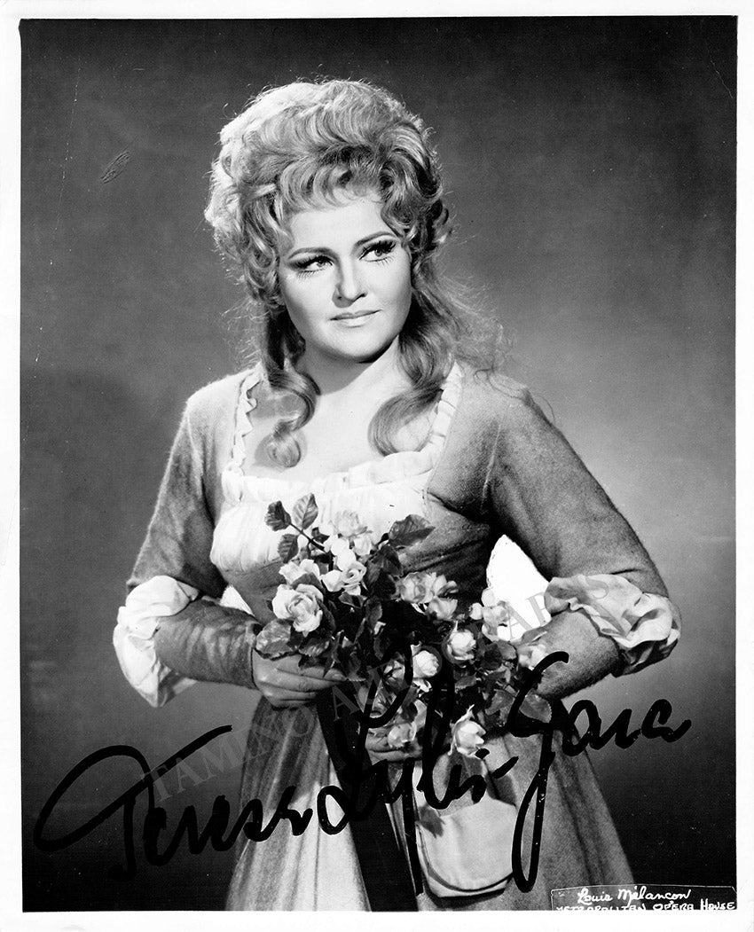 Signed photograph, shown as Violetta in Verdi's La Traviata. Photo by Louis Melancon, Metropolitan Opera, New York. Size is 8 x 10 inches, very small creases on edges, otherwise in excellent condition.